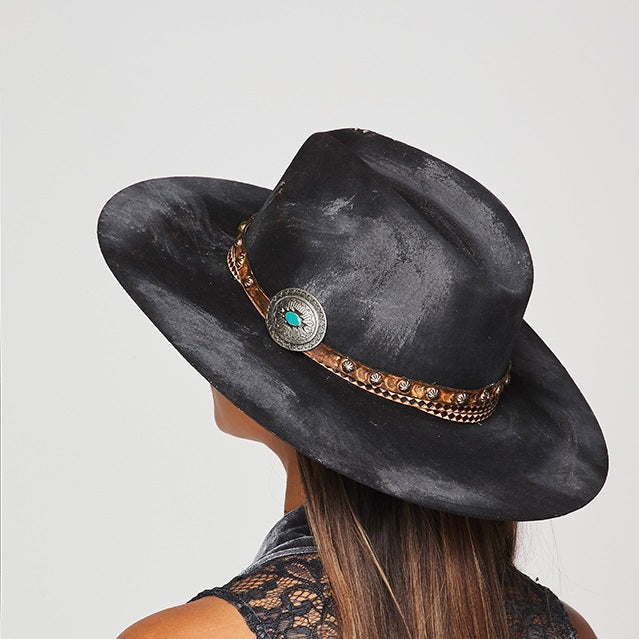 The ANNA hat is the perfect mix of style and function, featuring wool felt, a genuine leather band, and a turquoise jewel buckle. This eye-catching accessory is from the Stampede Collection, boasting a 3.75 inch flat brim allowing for breathability and sun protection. Stand out in style with ANNA.