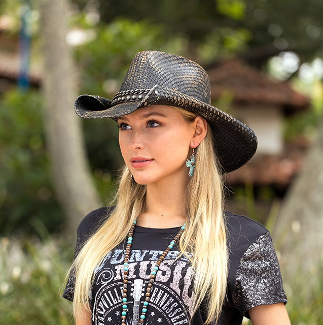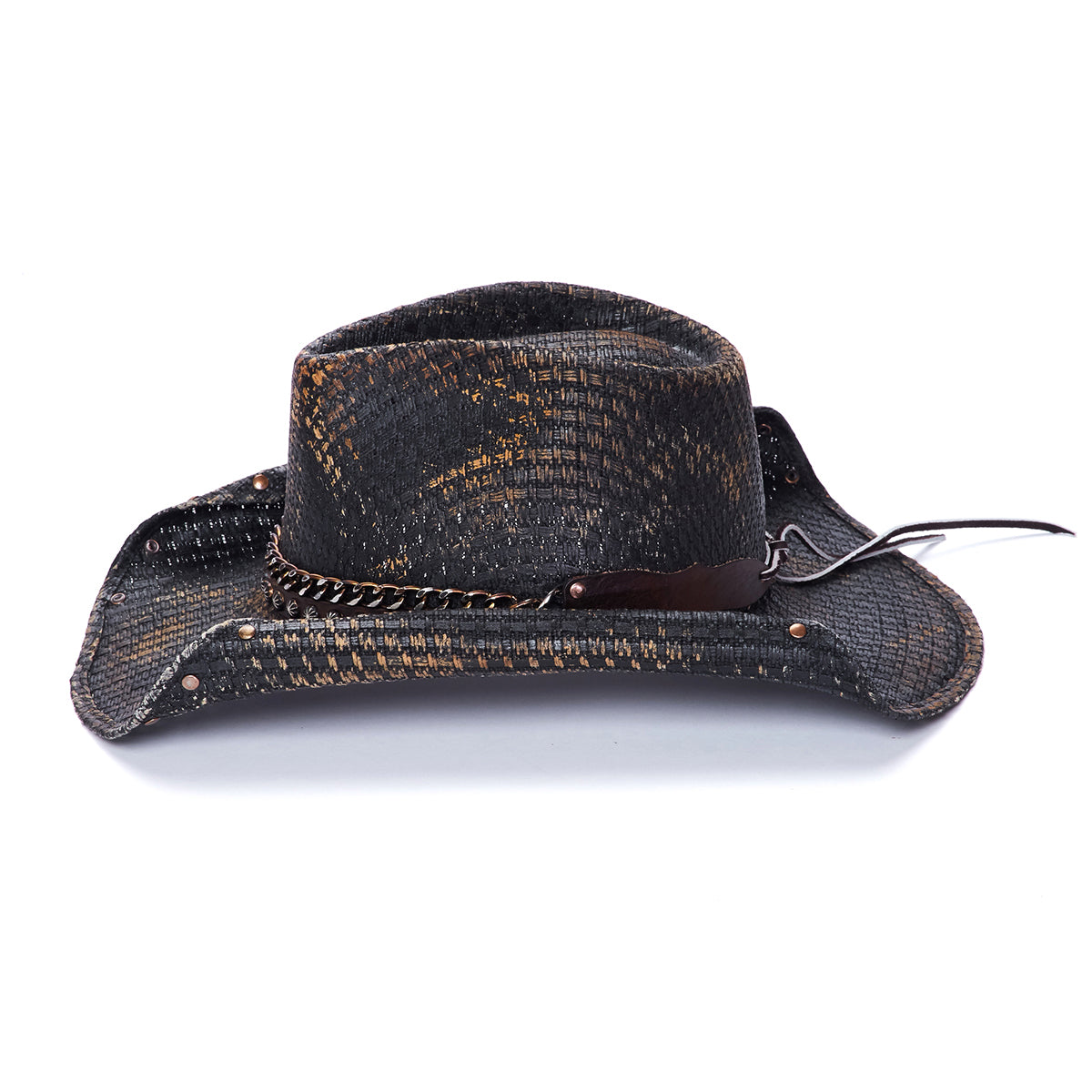 The COLD BLAZER from the Stampede Collection features a premium canvas construction, genuine leather band with mini studs and chain link, and a 3.75-inch rolled brim. Enjoy this fashion-forward look, complete with superior comfort and craftsmanship.