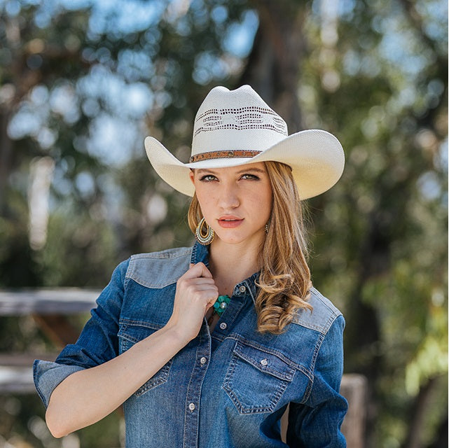 Travel in style with LA NETA's Stampede collection hat. Constructed with a bangora straw material, this 4 inch brim hat offers certified protection from the sun. With its genuine leather band partnered with mini studs, you can be sure of a stylish and secure fit. An X-Comfort sweatband enables premium breathability and moisture-wicking comfort.