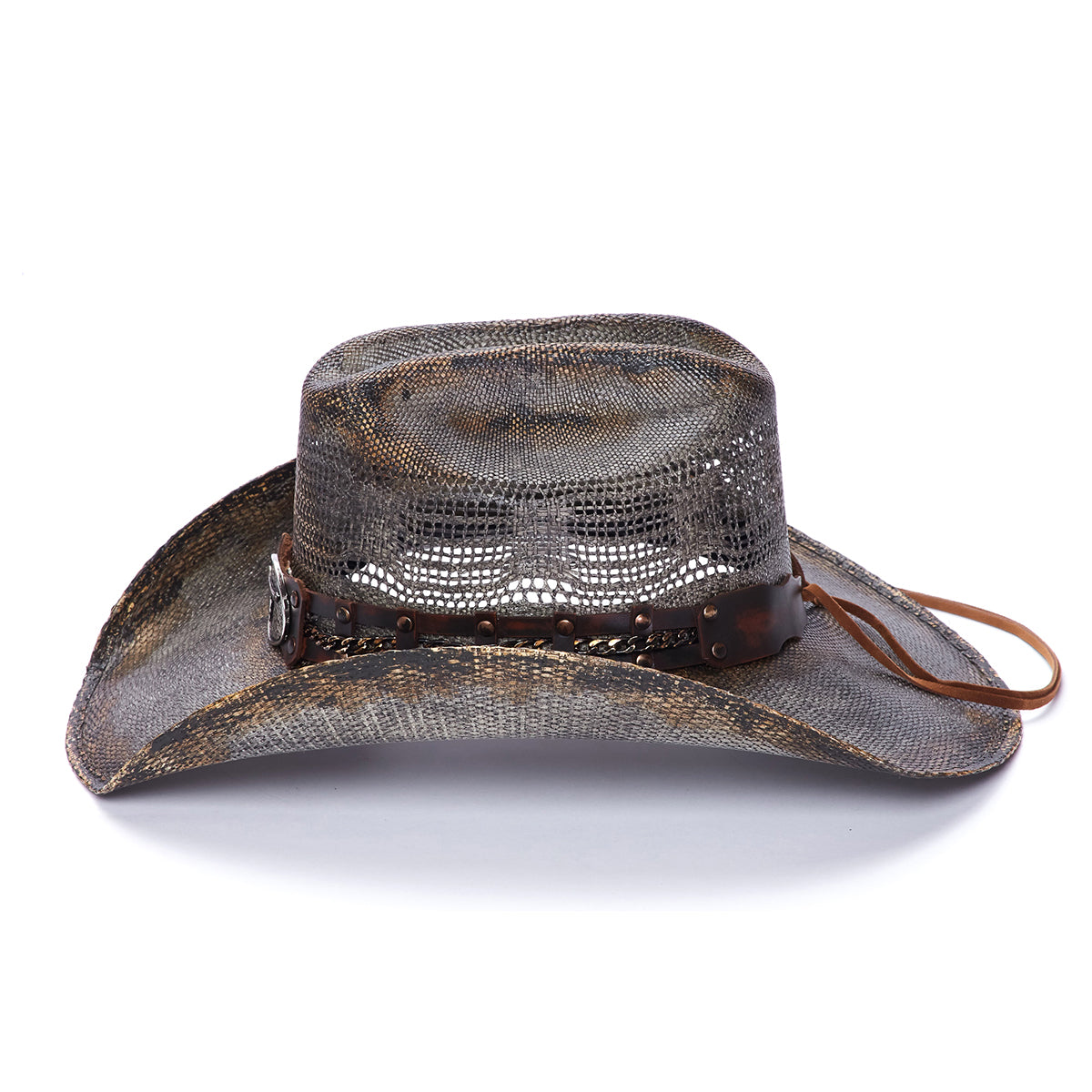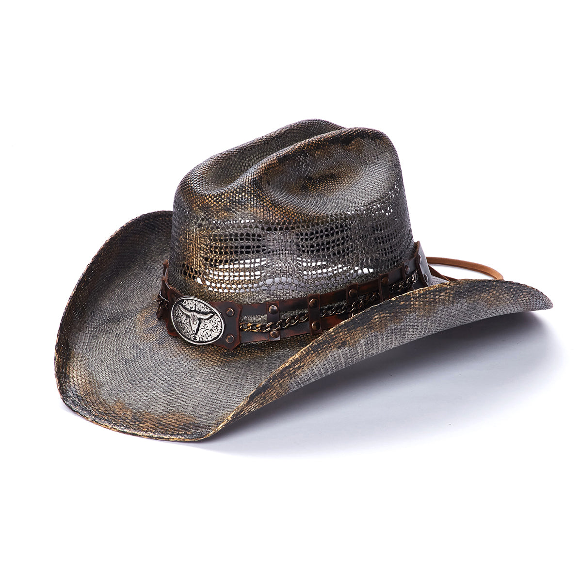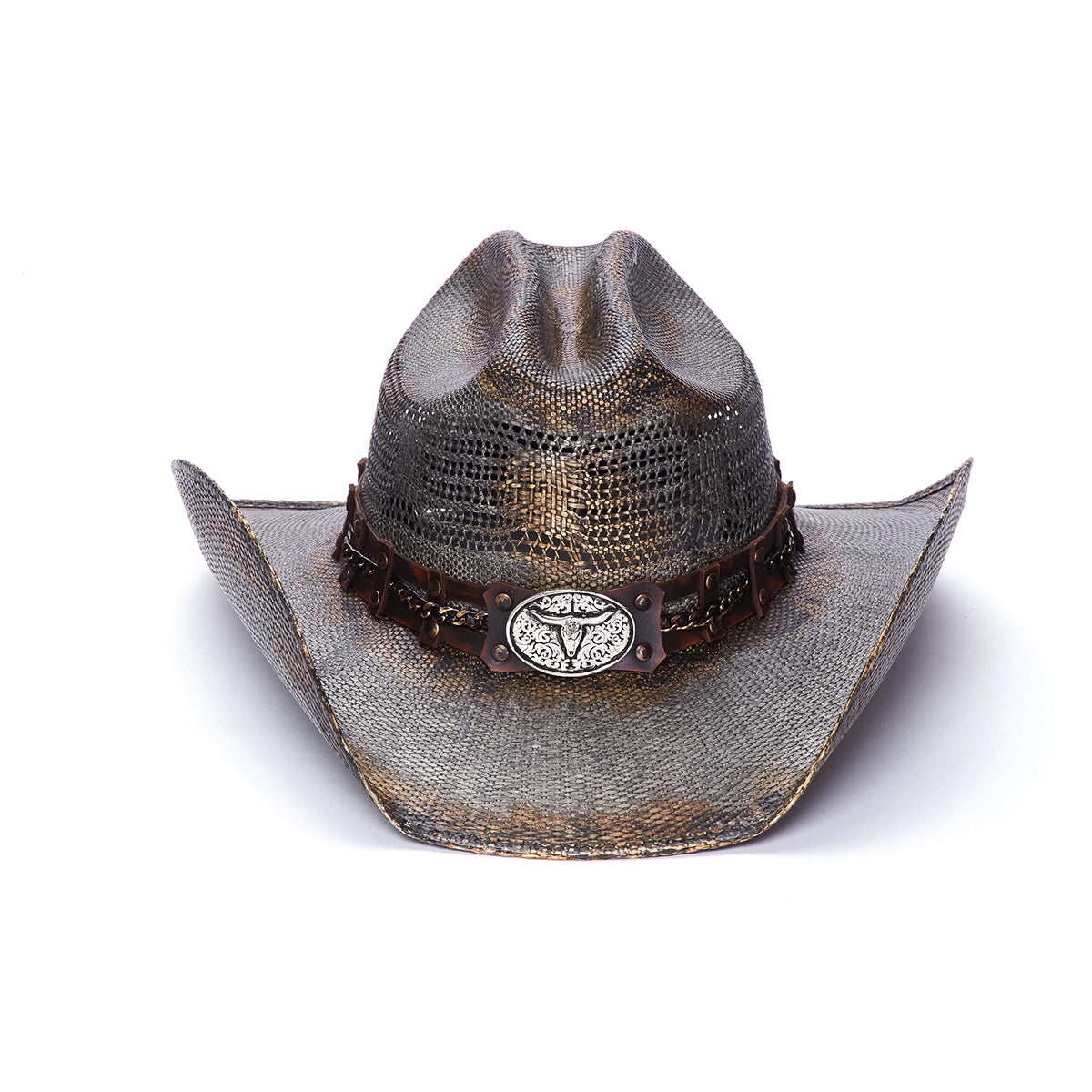 The MONTURA Stampede Collection hat is a stylish choice for outdoor wear. Crafted with genuine Bangora straw and finished with a 4in brim and vented crown, this hat ensures breathability and comfort. The genuine leather band with chain link and studs adds a hint of western flair while the Texas Longhorn buckle adds a touch of Texas pride.