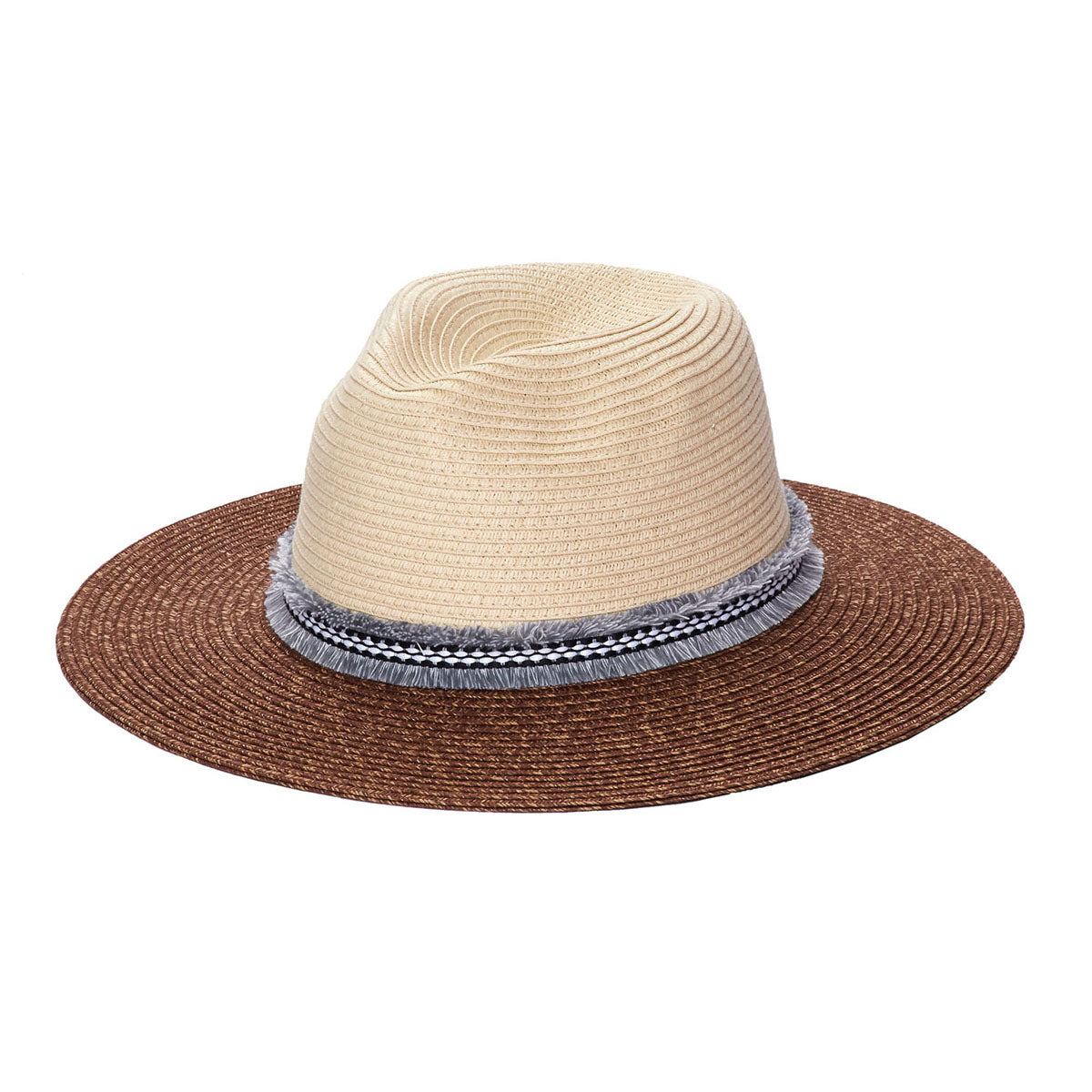 The NS-2022 hat from the Kallina Collection is the perfect blend of fashion and function. This hat is made of a premium combination of Toyo straw and polyester cotton for a light, breathable fit. Its frayed edges give it a stylish look, while the elastic fit ensures it will stay secure in any weather. And best of all, it features U.V. sun protection to keep you safe from the sun's rays.