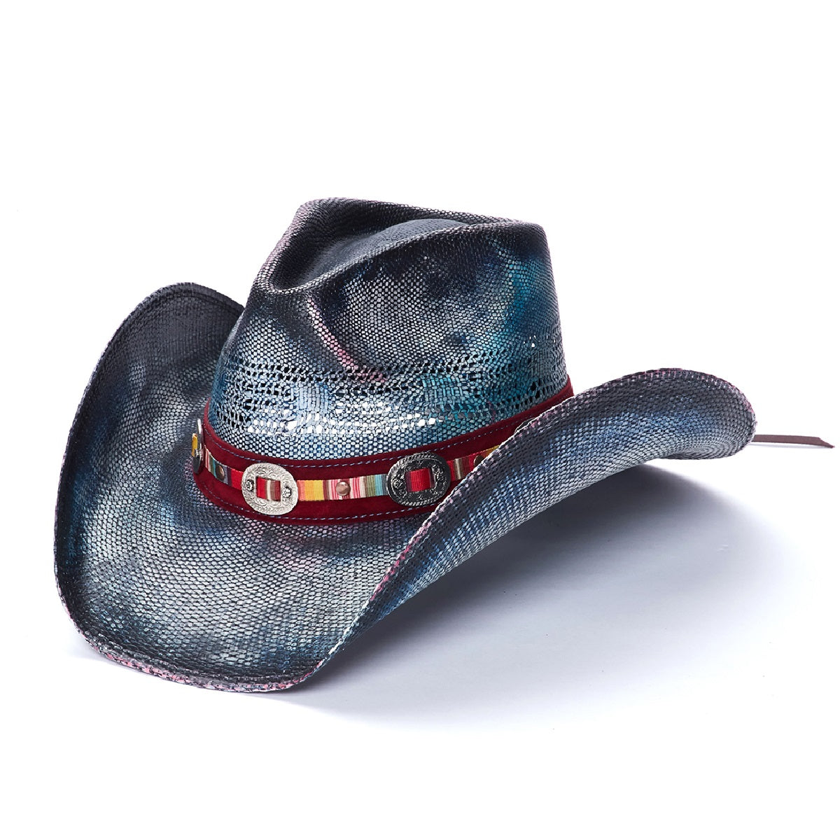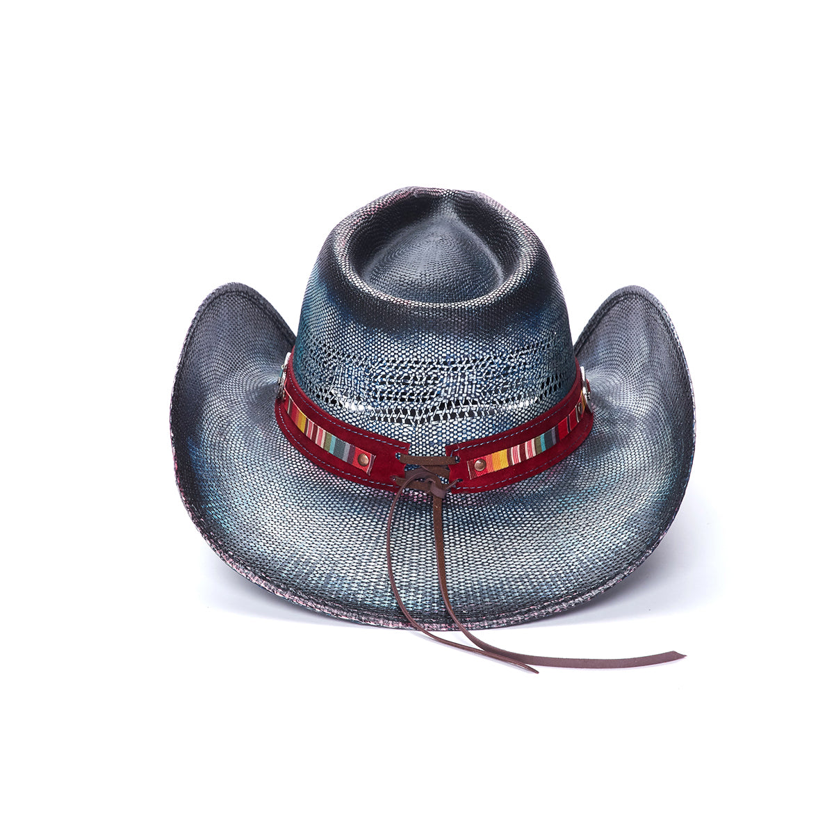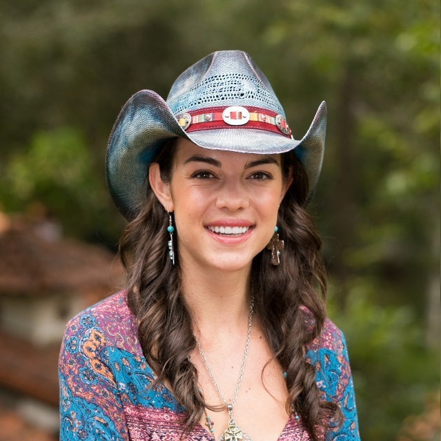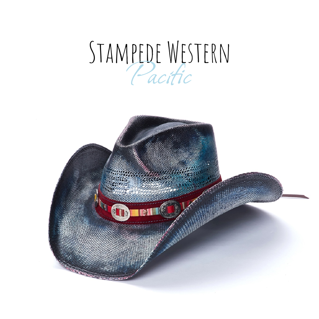 Introducing the PACIFIC hat for your outdoor adventures. Crafted from genuine Bangora Straw, the 4 inch brim ensures coverage from the sun while a vented crown ensures breathability. This classic style is both stylish and practical, adorned with a genuine leather band with striped pattern and mini buckles, for a modern yet timeless look. Part of the Stampede Collection, it's the perfect accessory for any outdoor excursion.