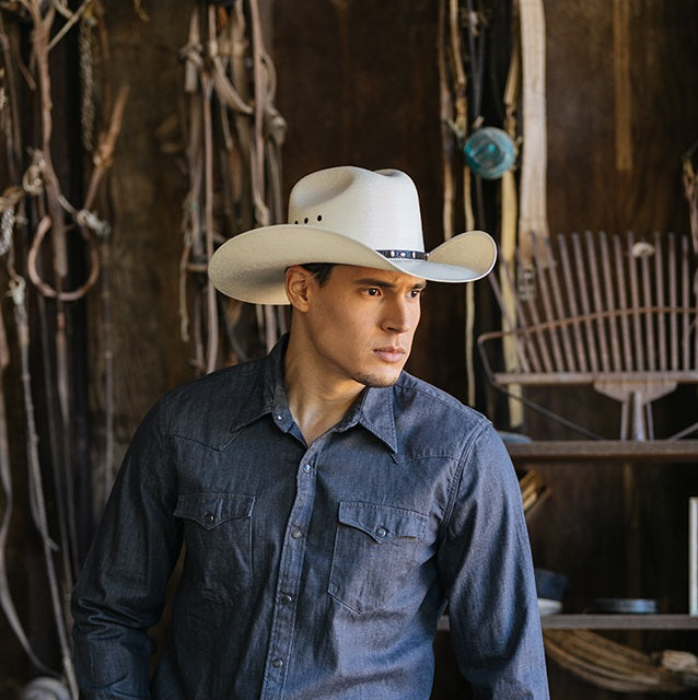 TUCKER is part of the Stampede Collection and is crafted from quality 50X Shantung straw with a genuine leather band and mini studs. The vented crown and X-Comfort Moisture-Wicking sweatband keep your head cool and comfortable, while the 4 inch curved brim keeps you looking stylish.