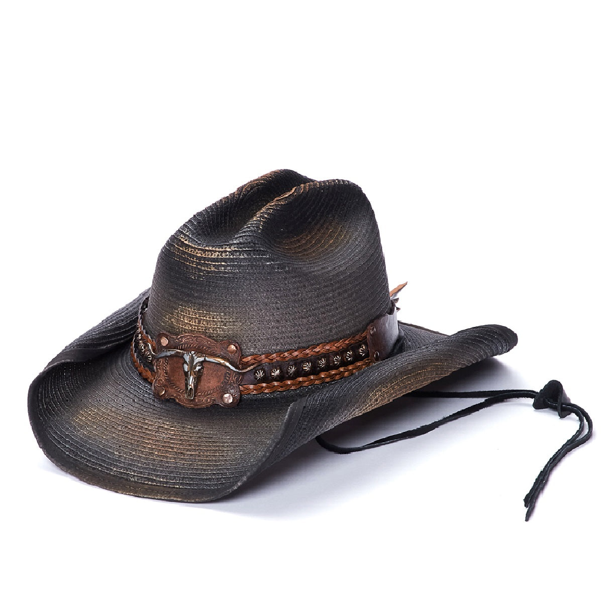 The WRANGLER is a stylish yet durable Stampede Collection hat from the expert craftsmanship of genuine leather, premium canvas, and a large longhorn buckle. For a comfortable and secure fit, the adjustable chin chord and 3.75 inch rolled brim make it ideal for any outdoor excursion.